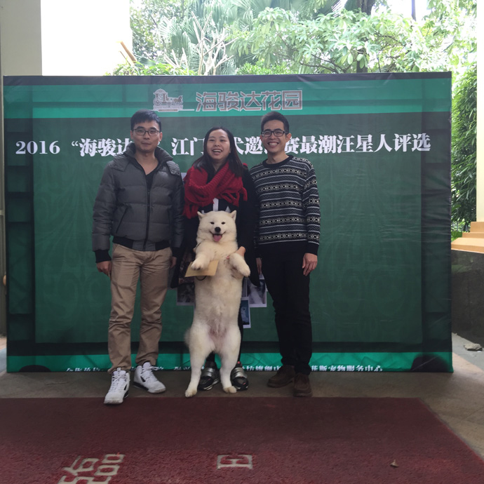 獲得本屆最潮汪星人評(píng)選第一名的是兩歲的公狗阿拉斯加——豆丁,奪得1000元現(xiàn)金大獎(jiǎng)和獎(jiǎng)杯一個(gè)!獲得第二名的是英武帥氣的邊境牧羊犬——小壯,邊境牧羊犬以精力旺盛、體格精實(shí)且容易學(xué)習(xí)雜技運(yùn)動(dòng)而聞名,且被學(xué)界認(rèn)為是最聰明的犬種。今天一見果然名不虛傳,主人一聲令下“定”就一直鼻梁頂奶糖不敢動(dòng)。獲得第三名的是可愛呆萌的薩摩耶犬——nana,笑容是薩摩耶犬的特征,看起來永遠(yuǎn)在笑的樣子喜歡親近人,個(gè)格溫和,還會(huì)主動(dòng)跟人握手。