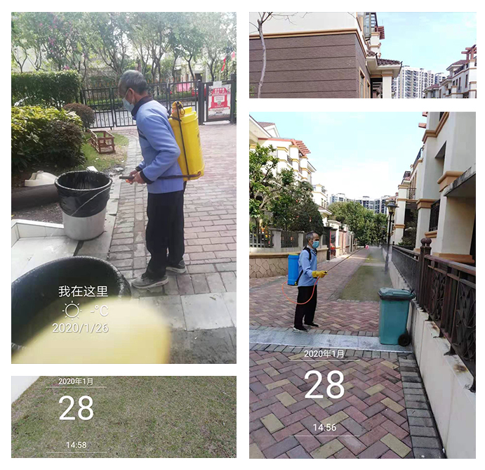 在未接到居委通知部門出入口核查湖北籍車輛的時候,已經(jīng)提前微信公眾號推送通知業(yè)主,封閉東西門崗,保留南北門,禁止外來人員進(jìn)入,要求員工全面調(diào)查小區(qū)內(nèi)鄂字頭車牌并摸清車主動向。對全社區(qū)的所有客戶觸點、樓道、電梯間、垃圾桶進(jìn)行消毒,輪流在小區(qū)主入口處值守測量體溫。所有防控工作的布置和落實,得到了政府、居委和住戶的高度評價。